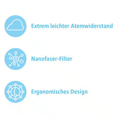 · erfüllt den Prüfstandard EN149:2001-A1:2009 der Schutzklasse 2