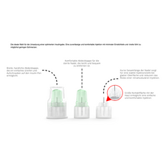 Unsere Pen-Nadeln bieten eine hervorragende Lösung für die tägliche Insulingabe. Entwickelt, um eine zuverlässige und komfortable Injektion zu gewährleisten, zeichnen sich diese Nadeln durch ihre minimalen Einstichtiefen und -breiten aus, was zu möglichst geringen Schmerzen führt. Die Nadeln sind in vier verschiedenen Größen erhältlich, um den individuellen Bedürfnissen gerecht zu werden.