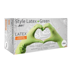AMPri STYLE GREEN Latexhandschuhe puderfrei by MED-COMFORT, Grün | Box (100 Stück)