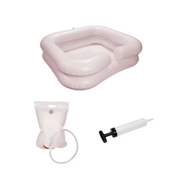 Das AMPri Waschbecken mit Duschvorrichtung und Pumpe ist aufblasbar mit Aussparung am Hals und besonders zur Haarwäsche im Liegen geeignet.