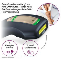 3) Auf niedrigster Energiestufe für Arme, Beine, Gesicht, Achselhöhlen und Bikinizone