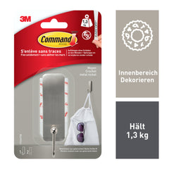 Mittelgroßer Command™ Metallhaken in gebürstetem Nickel, 17034, 1 Haken, 2 Strips | Packung (1 Stück)