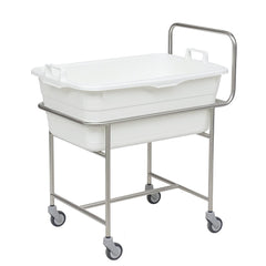 Novocal Edelstahl-Fahrgestell mit Schiebebügel 4 Leichtlauflenkrollen Ø 75 mm - mit Kunststoffwan | Packung (1 Stück)