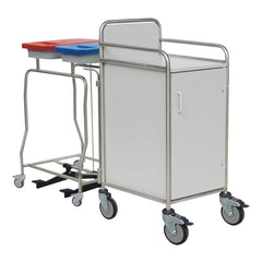 Hochwertiger Stationswagen mit robustem Edelstahlrahmen für den professionellen Einsatz.
