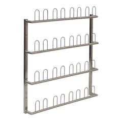 Ein robustes und praktisches Wandregal aus Edelstahl, das speziell für die Aufbewahrung von OP-Schuhen entwickelt wurde.