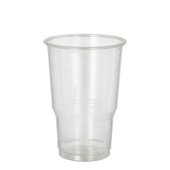 Umweltfreundliche und transparente Trinkbecher aus PLA mit praktischem Schaumrand.