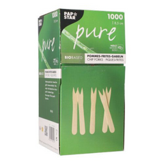 PAPSTAR Pommes-Frites-Gabeln "pure", Holz, 8,5 cm | Packung (1000 Stück)