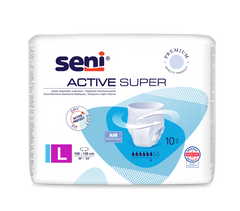 Die atmungsaktiven Inkontinenzpants Seni Active Super können wie herkömmliche Unterwäsche angezogen und getragen werden. Sie sind die optimale Lösung für aktive Menschen, die Wert auf Diskretion und Komfort legen. Auf der Außenseite des Produktes befindet sich ein Nässeindikator, der über den Wechselbedarf informiert.