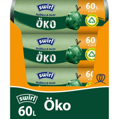 Swirl Öko-Müllbeutel mit Zugband 60 l Reißfest & Dicht | Rolle (8 Beutel)