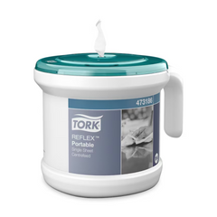 Der Tork® Tragbarer Reflex™ Einzelblatt Innenabrollungsspender ist ideal für das Abtrocknen von Händen und Abwischen von Oberflächen in professionellen Umgebungen unterwegs. Dieses einfach zu bedienende, hygienische und langlebige System reduziert den Verbrauch um bis zu 37% im Vergleich zum Tork® Innenabrollungssystem. Der stabile Griff ermöglicht ein einfaches Mitnehmen oder Befestigen an einem Reinigungswagen, so dass immer Papier zur Verfügung steht. Die Rolle ist vollständig umschlossen und vor Spritzern und Schmutz geschützt. Nachfüllpackungen mit Füllstandsanzeige sorgen dafür, dass immer ausreichend Papier vorhanden ist.